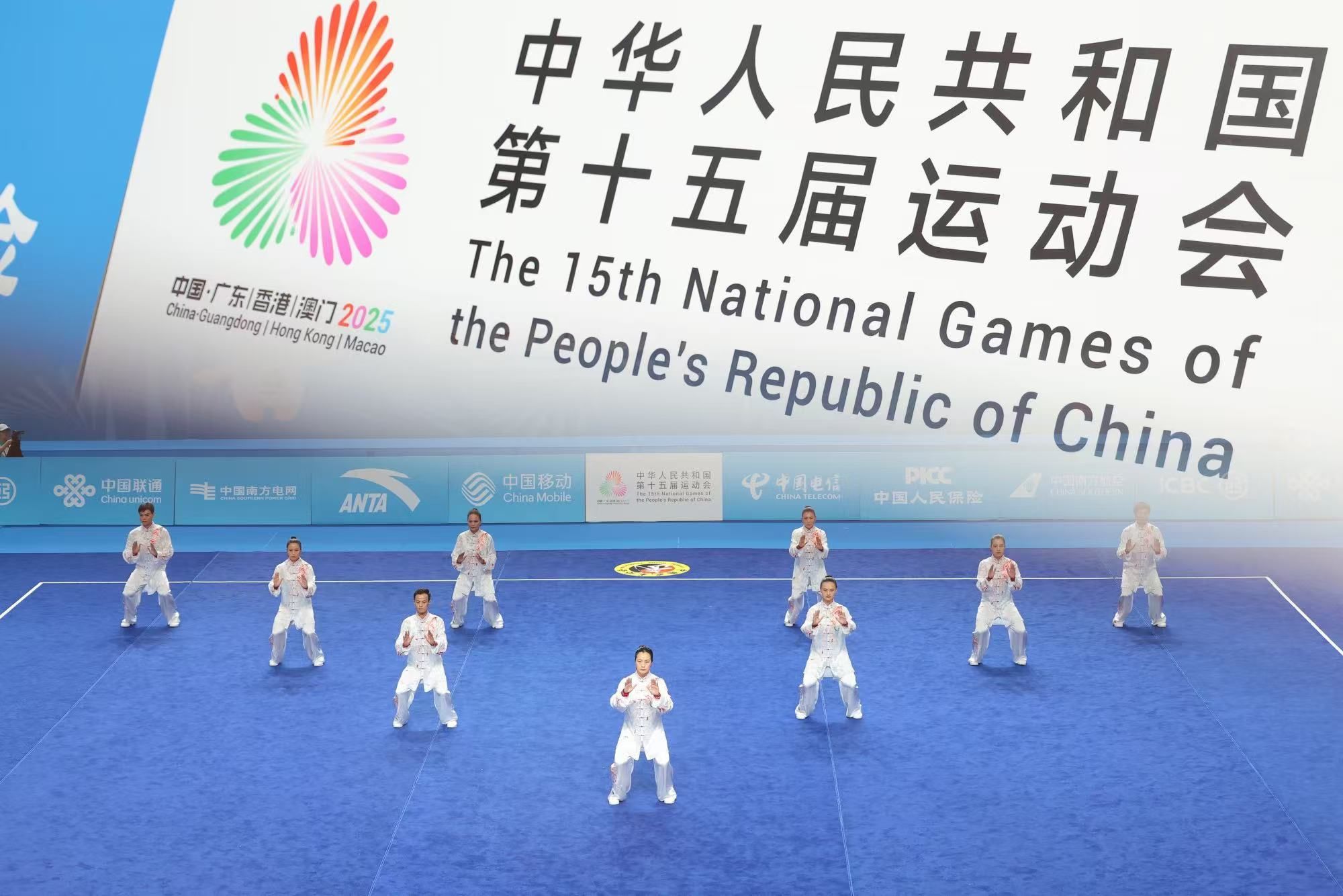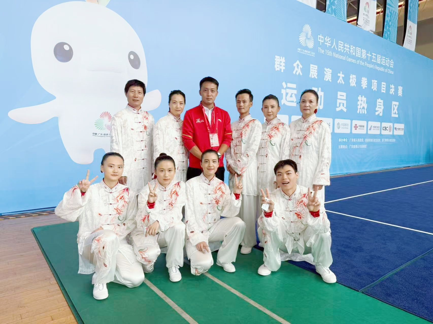 随后,在广州佛山举行的第十五届全运会群众展演太极拳项目决赛上,我校体育教师、世界武术冠军俞特,以浙江省(八法五步)代表队领队兼教练员的身份,率领11名运动员再创佳绩。队员们步法沉稳有序,手法刚柔并济,将太极拳(八法五步)的端庄大气与行云流水之势展现得淋漓尽致,最终同样斩获该项目三等奖,为浙江省再添荣光。