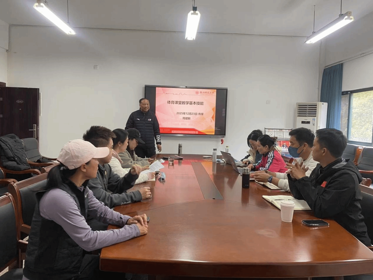 特邀杭州师范大学周建新教授,在体育馆206会议室开展体育教师基本技能专题讲座,各教研室主任及全体新进体育教师参加。